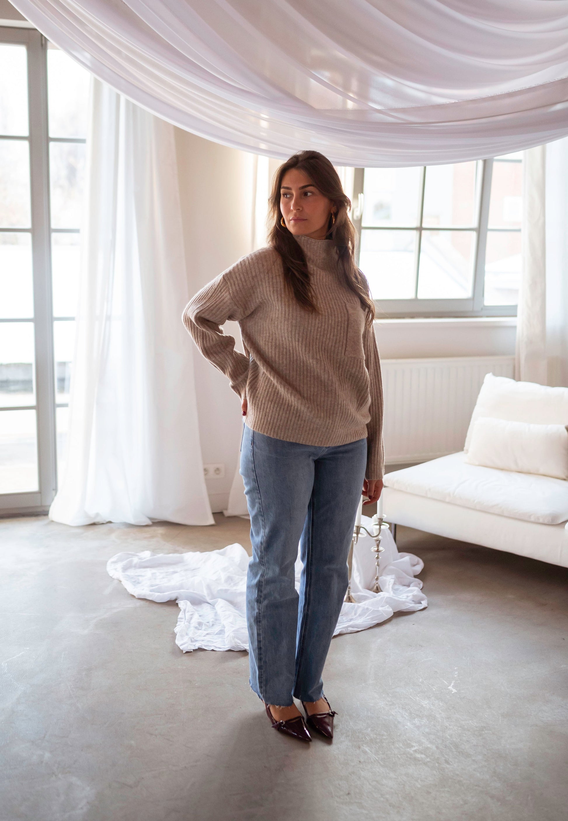Wie ein sanfter Morgenstrahl, der über die Haut gleitet, erzählt Annika™ | Weicher Strickpullover von ruhiger Stärke und femininer Eleganz. Sein feiner Strick flüstert Wärme, sein dezenter Glanz umarmt die Silhouette – ein stilles Versprechen von Stil, Behaglichkeit und subtiler Anziehung.